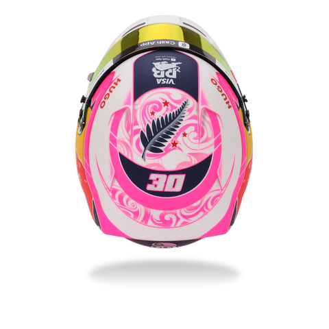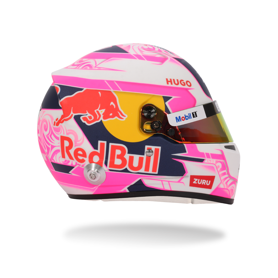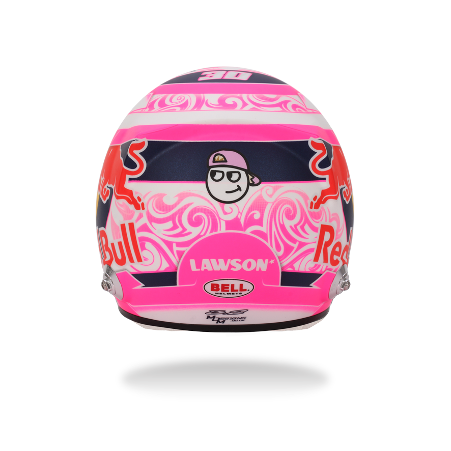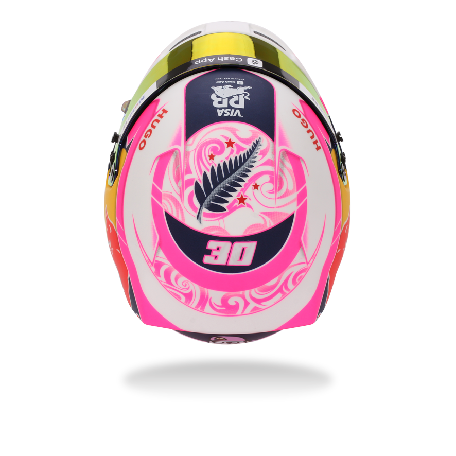 With one of the most distinctive designs on the 2025 Formula 1 grid, Liam Lawson’s helmet makes a statement with its vibrant pink and white livery – a modern tribute to his New Zealand roots. From Maori-inspired motifs to the iconic silver fern and Southern Cross stars of the national flag, every element reflects a deep bond with his homeland. This helmet doesn’t just stand out – it proudly continues the legacy of Kiwi drivers competing at the pinnacle of motorsport. There is high-quality detailing around the HANS device clips, adjustable visor and chin straps.
